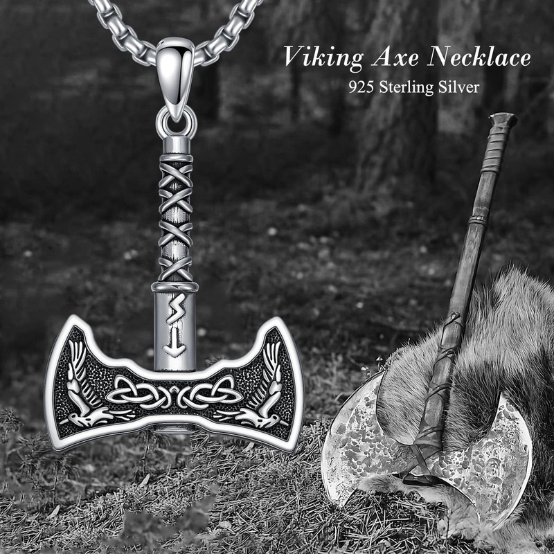 - 【Material】The Norse axe necklace is made of 925 sterling silver, and it paired with a stainless steel chain for great durability. Our double sided axe necklace is will not cause any irritation to sensitive skin and is ideal for long-term wear.