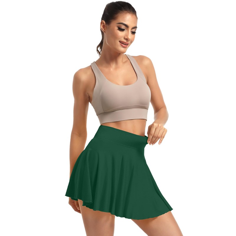 YOAKAKU Pleated Tennis Skater Skirts for Women with Pocket Shorts Flowy Golf Athletic Skort Sports Mini Skirt Green
