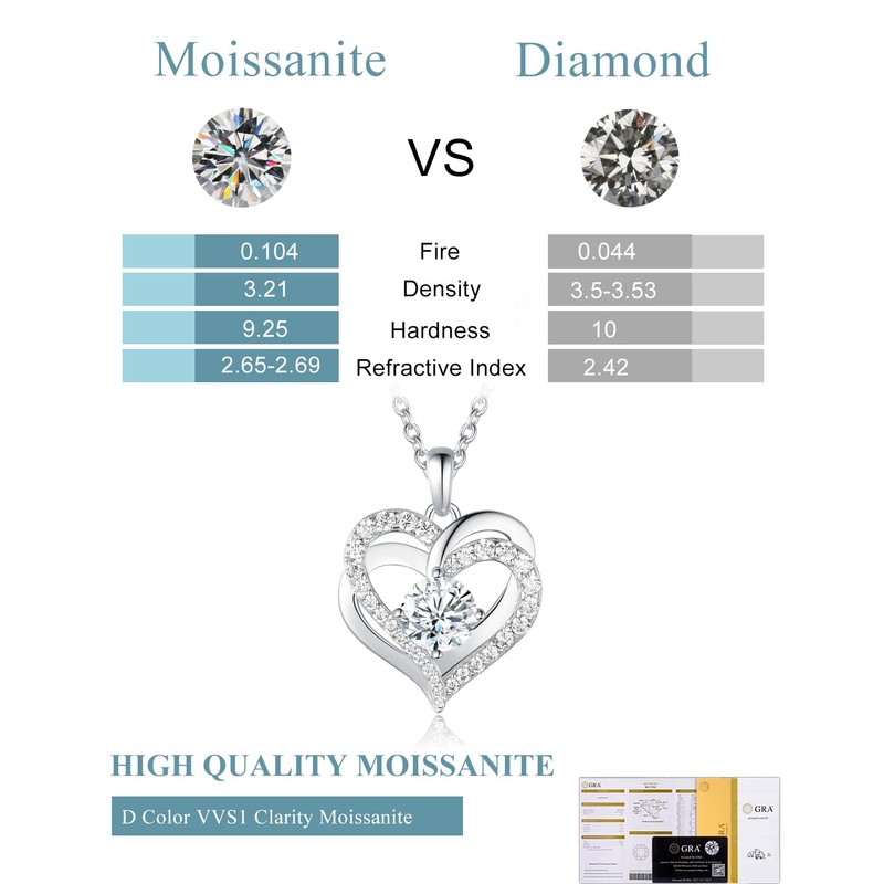 - Elegant Design Inspired by Love: This moissanite heart necklace features a double-heart design, symbolizing deep connection and inseparable love. At its center, a 1-carat moissanite sparkles like the love that lights up our lives. A perfect gift for a partner, mother, daughter, or close friend—because love deserves to shine.