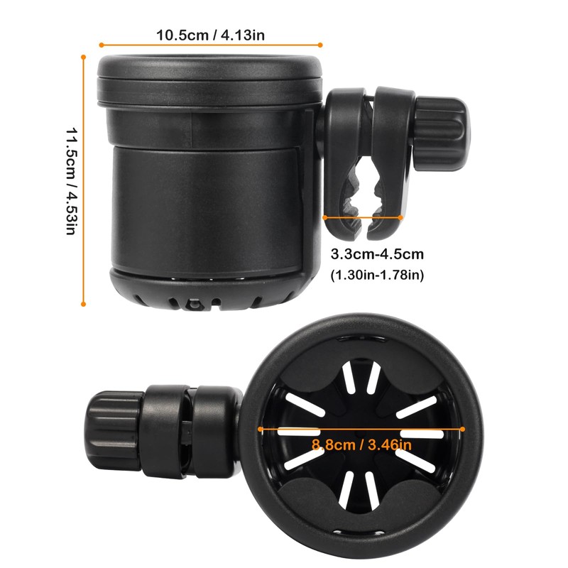 - ✔【DUAL CUP HOLDERS WITH 360° ROTATION】 Large holder (3.3") for tumblers + small holder (2.2") for coffee cups. Smooth 360° swivel for perfect positioning.