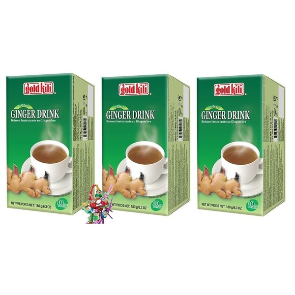Yoaxia ® – Pack of 3 – [3 x 180 g (10 x 18 g)] Gold Kili Instant Ginger Drink/Instant Ginger Drink + a Small Lucky Charm