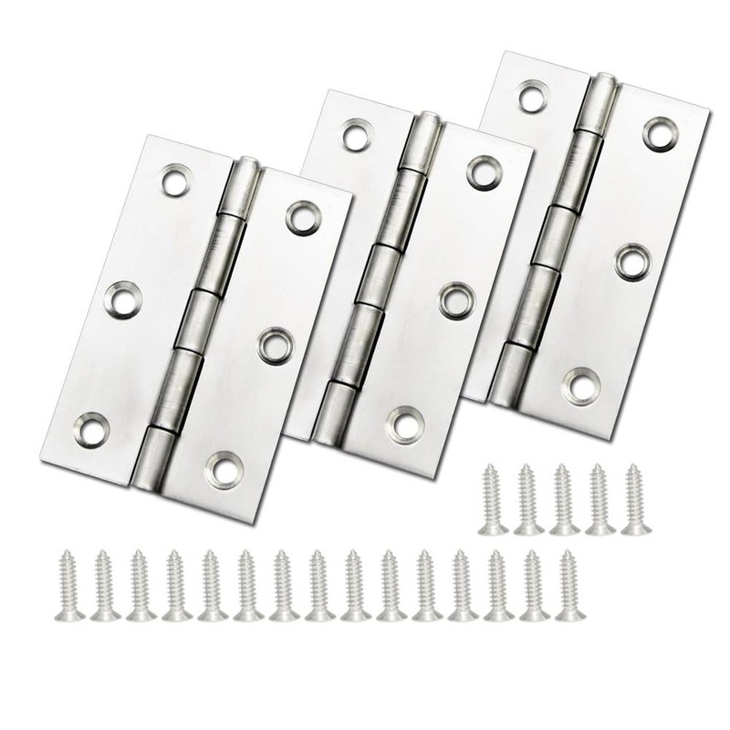 YOBOKO 3 Pcs Stainless Steel Anti Rust Door Hinges with Screws for Wood Doors Gate Windows Closet Drawer Boxes Silent Open Close Hinges (Steel)