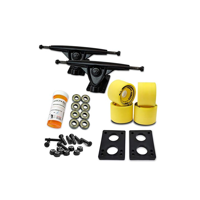 Yocaher Longboard Skateboard Trucks Combo Set 71mm Wheels + 7"/180mm Heavy Duty Aluminum Black Trucks, Bearing, Riser Pad, and Longboard Hardware Package