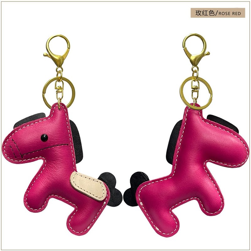 [Yocipa] Cute Genuine Leather Horse Keychain with Horse Design Charm Leather Key Chain Bag Charm Car Key Ring Bag Charm for Bag Keyring Accessories, rose red