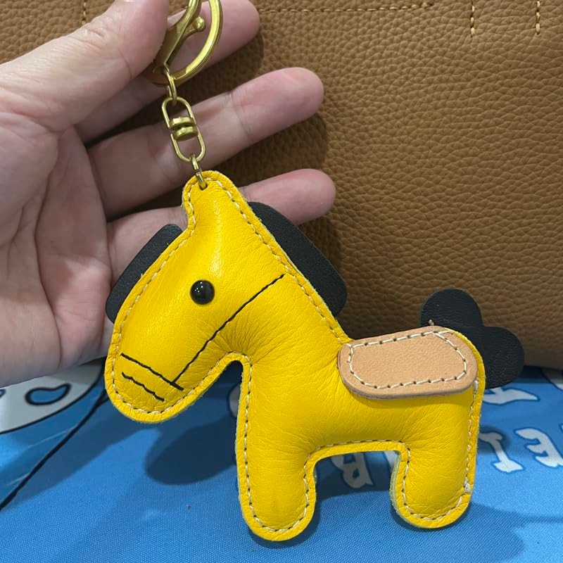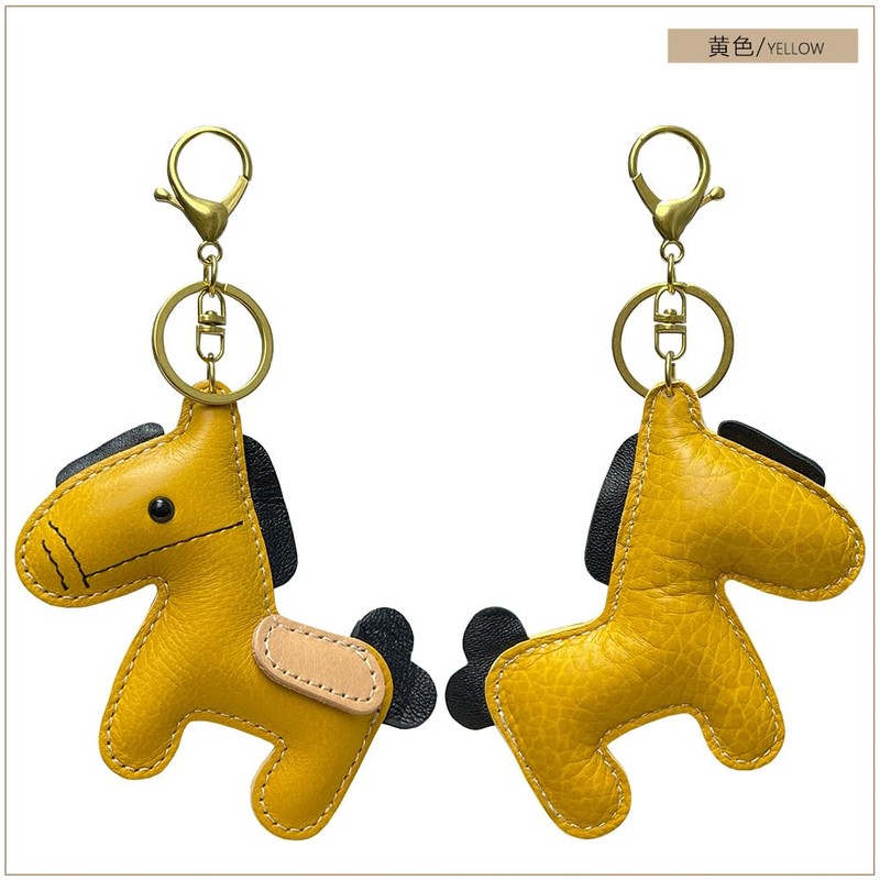 [Yocipa] Cute Genuine Leather Horse Keychain with Horse Design Charm Leather Key Chain Bag Charm Car Key Ring Bag Charm for Bag Keyring Accessories, yellow