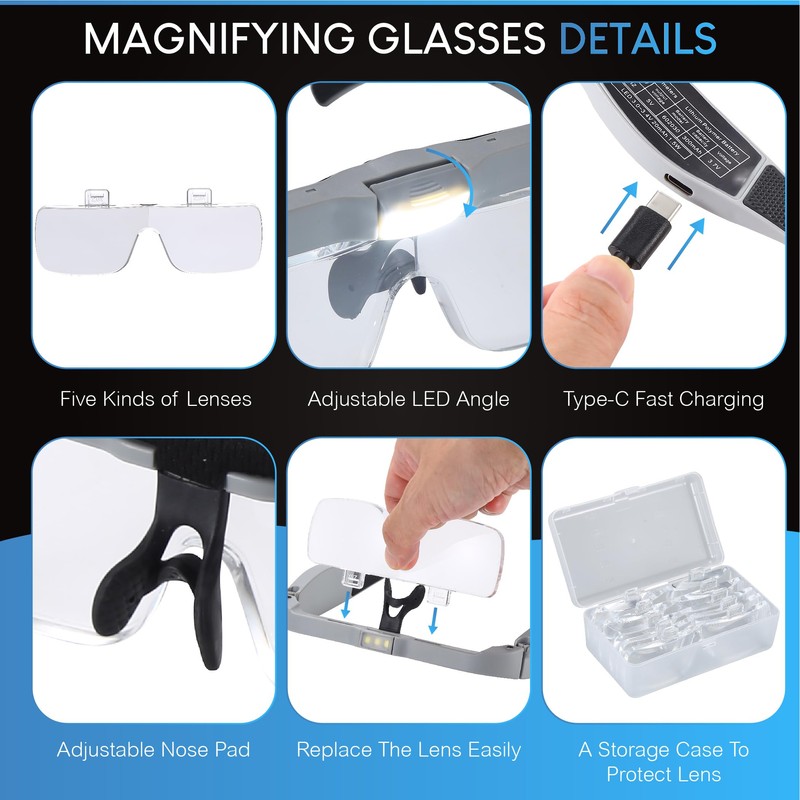 - Multifunctional Magnifying Glasses: Perfect Magnifying Glasses for close work, reading, painting, watch repair, arts and crafts. It is also a big help for seniors. If you have any questions about our product, please feel free to contact us, we're around to help you.