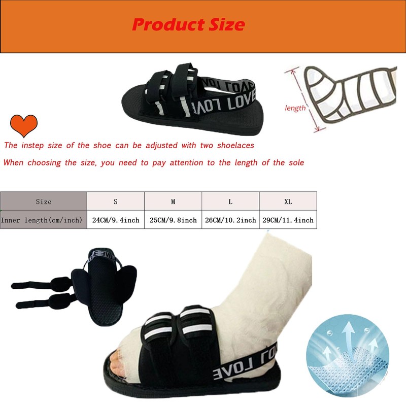 - Open on and off design: This design is convenient for putting on and taking off the foot with plaster, and it also allows more air to enter, and it is more breathable, which is conducive to faster recovery.