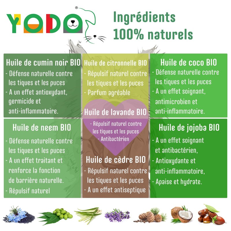 - FOR ANIMALS AND NATURE - WITHOUT COMPROMISE: We focus on sustainability and responsibility! YODO'S Tick Repellent is free from synthetic chemicals, parabens or artificial fragrances - safe for your pet and environmentally friendly.