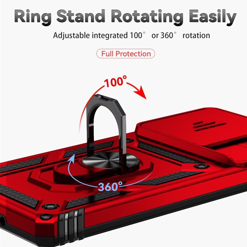 Yodueiv for Redmi Note 13 Pro 4G Case,Poco M6 Pro 4G 23117RA68G with Tempered Glass Screen Protector and Slide Camera Cover, Magnetic Ring Car Mount Holder Cover for Xiaomi Redmi Note 13 Pro 4G Red