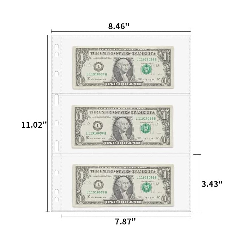 - 【Currency Collection 】The currency sleeves are about 280mm*215mm/11.02"*8.46" (L*W) per page, and each pocket size is 200*87mm/7.87"*3.42".