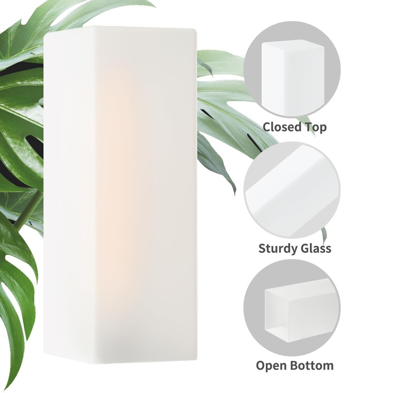 Yoenecea Replacement Glass Lamp Shade, 1 Pack Square Lampshade with Opening Bottom, Frosted Glass Lamp Shade Replacement for Outdoor Wall Light, Outdoor Post light (White, 10.63''H, 1 pc)