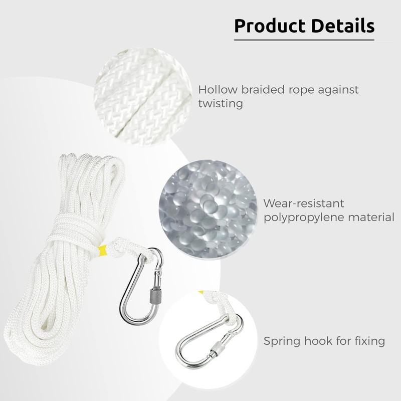 YOFAPA Life Saving Rope 49 ft: Braided Outdoor Climbing Rope with Hook & Ring Buoy Bracket