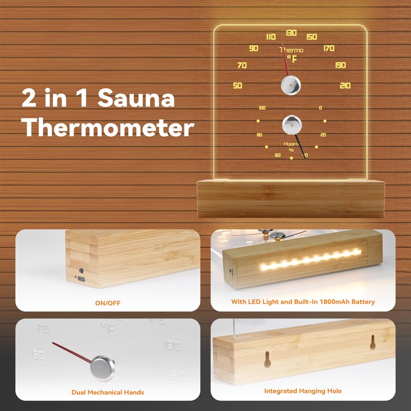 - With LED Light: The sauna accessories is made of transparent acrylic light-transmitting board and wooden base, resistant to falling, not easy to break. White led lighting ensures the scale is clearly visible and easy to read.
