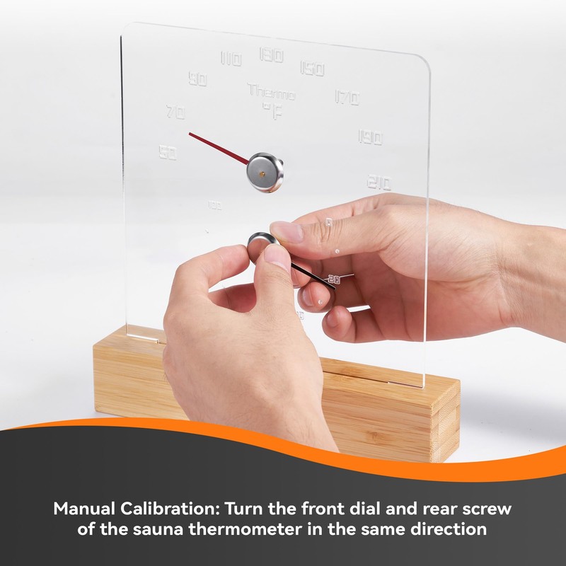 - Easy to Install & Adjustable: The sauna thermometer is easy to mount on the wall, there are 2 calibrators on the back of the thermometer, one for adjusting Fahrenheit and one for adjusting humidity.