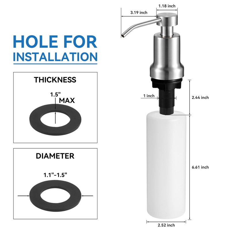 Enhance your kitchen or bathroom with our Built-in Foaming Soap Dispenser. Featuring a sleek stainless steel foam soap pump, this stylish and functional dispenser is designed to integrate seamlessly into your countertop.