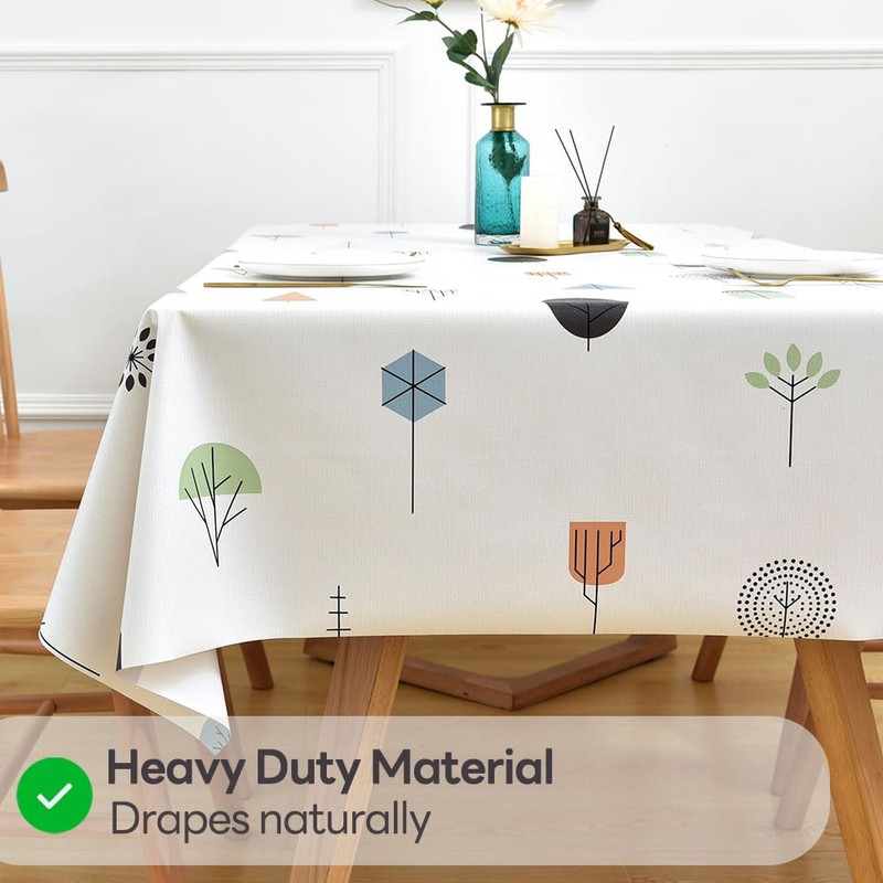 Yofori Table Cloth for Rectangle Table Heavy Duty Vinyl Tablecloth Rectangular Waterproof Plastic Tablecloth Wipeable Outdoor PVC Table Cover for Picnic(Small Trees, 54'' x 108'')