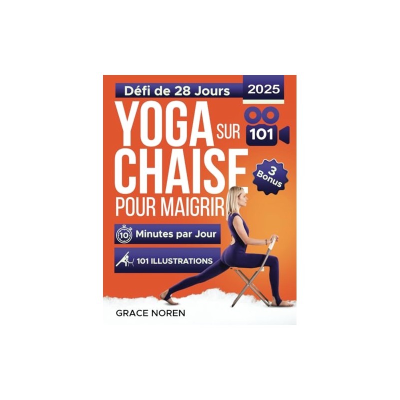 Yoga sur Chaise pour Maigrir: Guide Entièrement Illustré et Tutoriels avec 100+ Vidéos. Défi de 28 Jours pour Perdre la Graisse avec des Exercices à Faible Impact en Seulement 10 Minutes par Jour