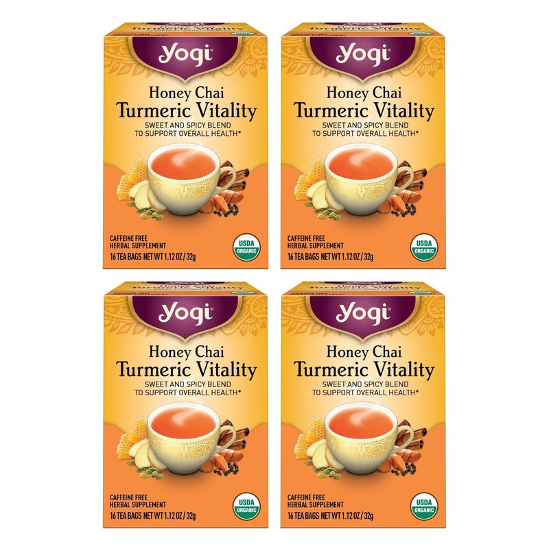 - Organic Turmeric Tea: Enjoy deliciously spicy-sweet Yogi Honey Chai Turmeric Vitality tea throughout the day to support your overall health and well-being