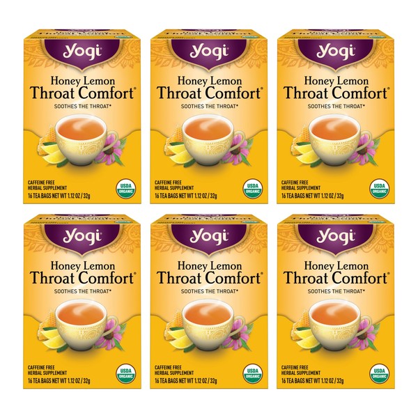 Yogi Tea - Honey Lemon Throat Comfort (6 Pack) - Soothes the Throat - 96 Tea Bags | Yogi