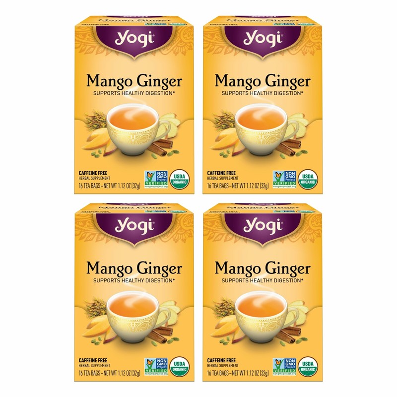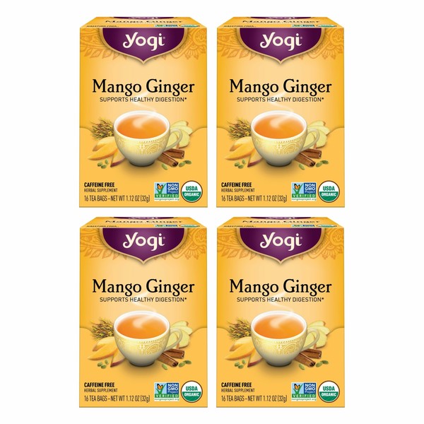 Yogi Tea Mango Ginger - 16 Bags per Pack (4 Packs) - Organic Ginger Root Tea to Support Healthy Digestion - Contains Antioxidants - Includes Cinnamon Bark, Rooibos Leaf, Mango Flavor & More