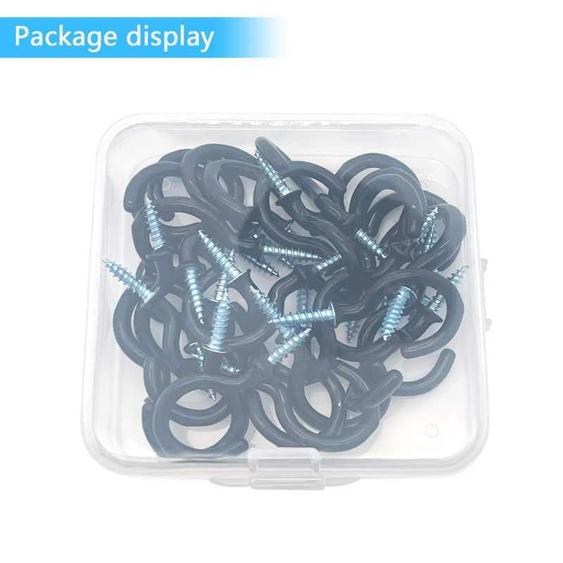 Yogopro Pack of 30 Screw Hooks Black Ceiling Hooks Hook Screws 50 mm Vinyl Coated Ceiling Hooks Widely Used in Homes and Offices Black