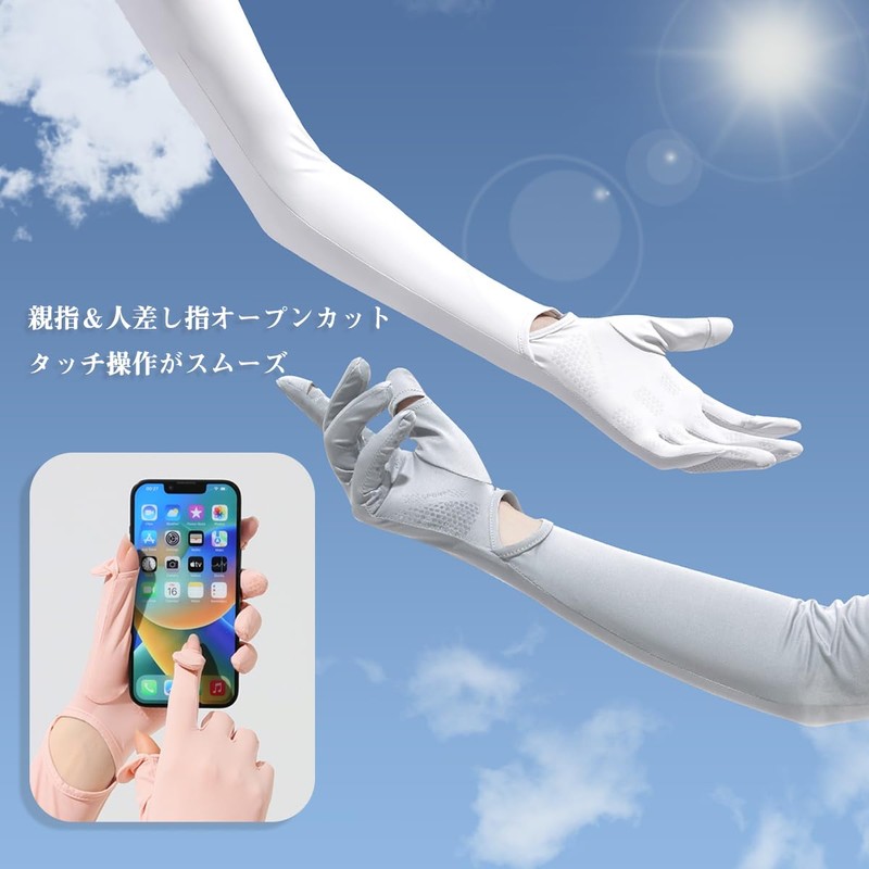 - No blind spots from the fingertips to the shoulders. Omnidirectional UV Shielding: Thoroughly blocks partially sunburn. One-piece design with a total length of 22.0 inches (56 cm) that seamlessly protects your fingertips, palm and upper arms. Combined with short sleeves for an invisible UV protection arm cover! A must have item for cycling, golf driving, and driving under the blazing sun