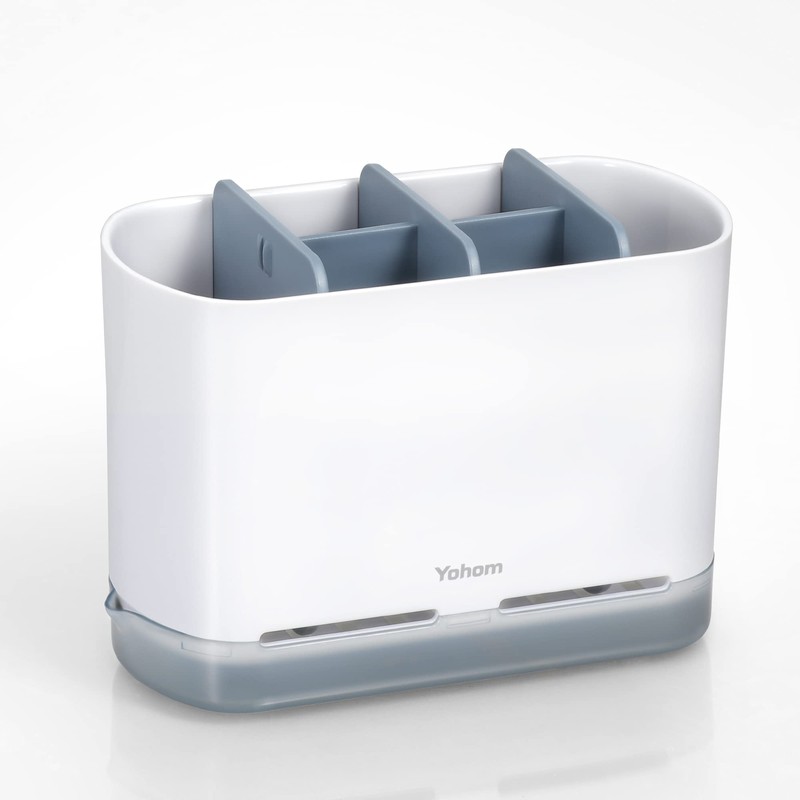 - Upgraded YOHOM Sink Caddy Organizer: Sturdier sink caddy have ample adjustable storage that hold everything you need for dirty dishes. The overall simple design of new series kitchen sink caddy, combined with the neutral gray and white colour.