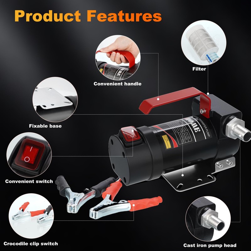 - Convenient and easy-to-use: This diesel pump comes with a complete set that meets usage needs: electric transfer pump, input and output hoses, nozzle, filter, hose clamp and connector. The portable design makes the diesel pump easy to store and carry, and the reserved holes on the pump base also allow you to easily secure it, making it easy to use anywhere.