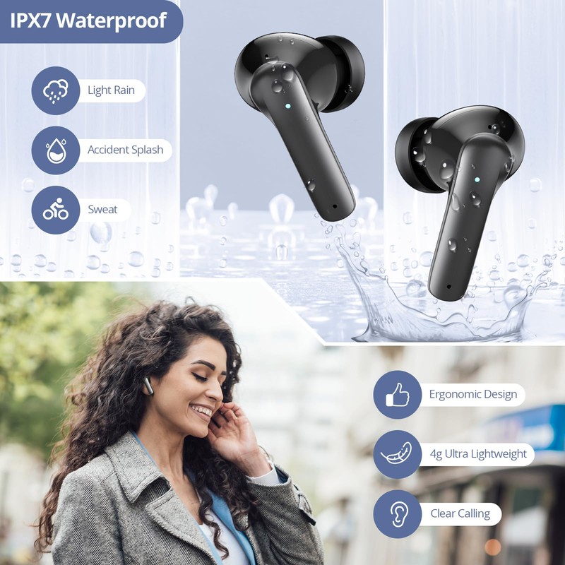 - ✨Lightweight Design & IPX7 Waterproofing: ✅Weighing just 4 grams, this Bluetooth headphones features an ergonomic design with soft silicone ear tips in S/M/L sizes. The tighter the fit, the better the noise isolation. Equipped with IPX7 waterproofing and high-quality nano-material technology, the ear tips offer excellent sweat and rain resistance. Whether you’re taking a walk, going for a run, or doing high-intensity workouts, it ensures a comfortable and stable wearing experience.
