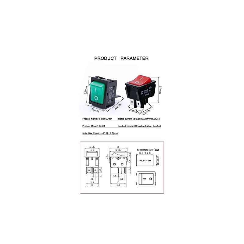 - 【Installation】 The KCD2 KCD4 Rocker Switch fits for 30X22mm panel Cut-out size, very easy to install(Snap In flush mount version).