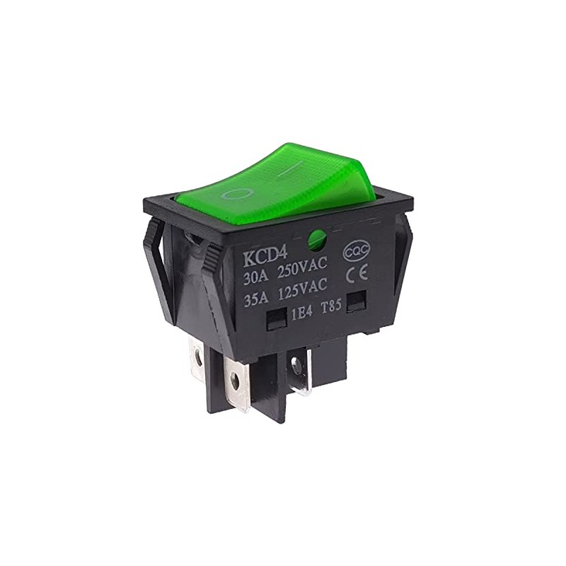 Yoiilnz 30A 250VAC/35A 125VAC KCD2 KCD4 Rocker Switch DPST 4 Pin Green Lighted 120V Rocker Toggle Switch ON Off Heavy Duty 4Pack