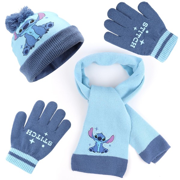YOILIK 3-in-1 Children's Stitc Winter Hat Scarf Gloves Set, Stitc Girls Winter Hat Scarf Gloves Set, Stitc Boys Warm Winter Hat Gloves Round Scarf Set, Blue, blue