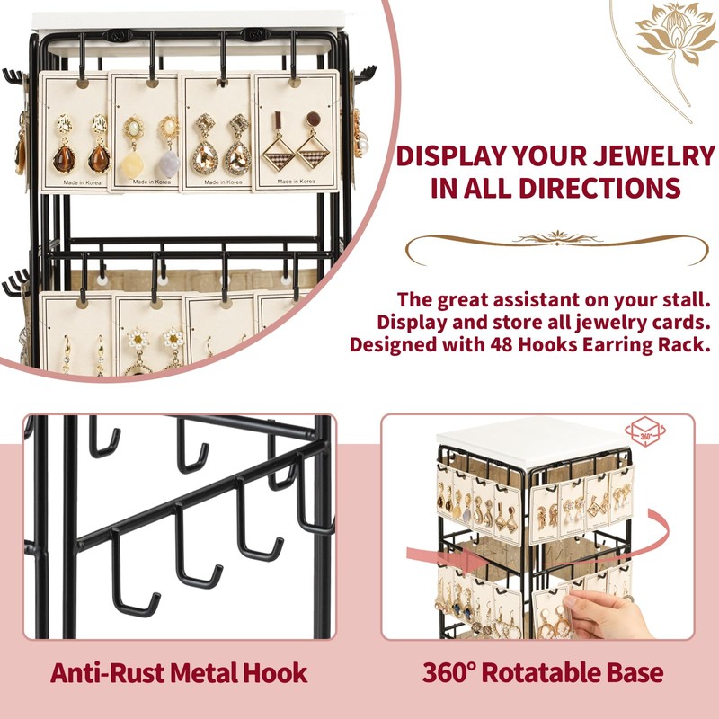 - Perfect Size: Earring display rack measures 7.28"L x 7.28"W x 15.74"H that doesn’t take up a lot of space and perfectly fit any counter, earring display jewelry display for vendors 48 hooks offer maximum storage capacity for hanging all of your jewelry collection easily and beautifully.
