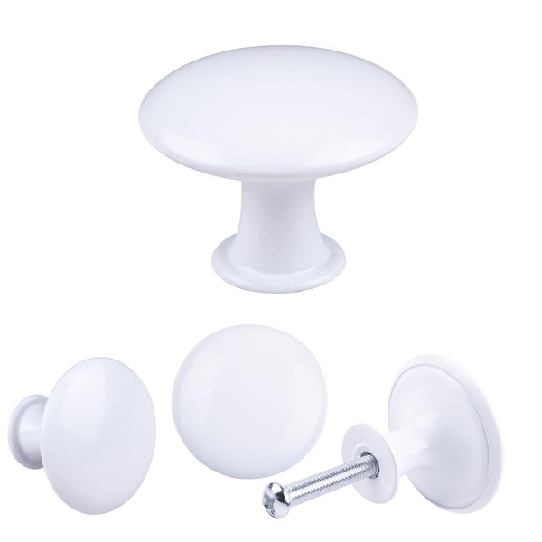 YOIPE 15 Pack White Round Varnish Lvory Kitchen Cabinet Knobs Cupboard Door Knobs Drawer Handle Pulls Dresser Knobs with 6 Pcs Screws for Bathroom Drawer Door Hardware