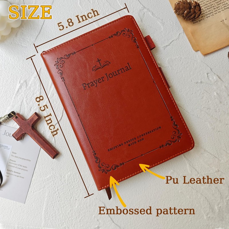 YOJO Bible Journal, Prayer Journal for Woman & Men, Daily & Weekly Bible Study Journal for Woman Men, PU Leather Prayer Journal, Christian Gifts for Women Men (Brown)
