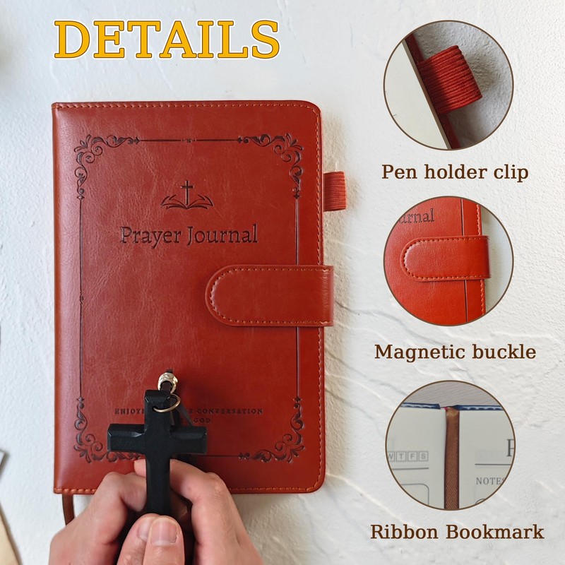 - 【Prayer Journal for Woman&Men】-- Immerse yourself in divine study with our thoughtfully crafted A5(8.5x5.8") sized notebook.The cover is made of high-quality PU leather,which is very comfortable to the touch,the magnetic buckle has strong appeal and can be closed tightly easily,premium thick paper,reduce ink bleeding,erasing fraying and shading issues.