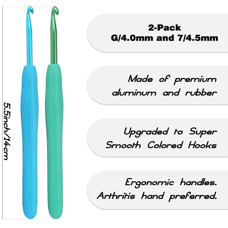 YOJOB 2Pack Size G / 4mm, 7/4.5mm Crochet Hooks, Super Smooth & Ergonomic for Beginner and Advanced (4.0mm, 4.5mm)