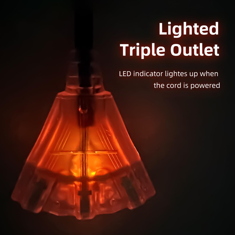 - 3 Outlets In 1:Multi plug extension cord comes with a pigtail triple tap; allow you to power multiple appliances simultaneously and maximize the usage of power strips and wall outlets