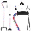 - 🔄 MULTIFUNCTIONAL & FLEXIBLE - Featuring 3 interchangeable bases, this quad cane adjusts to any terrain, enhancing balance and stability. This versatile folding cane is perfect for those who love to live life without limits