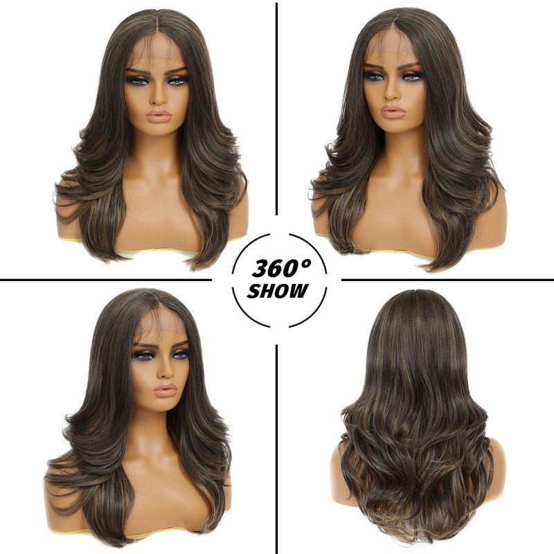 YOKAS Highlight Synthetic Lace Front Wig 13x4x1 T Lace Front Wigs 22 Inch Colored Middle Part Synthetic Heat Resistant Fiber Wig Pre-Plucked Hairline with Baby Hair for Daily Party Use(P1B/27/30)