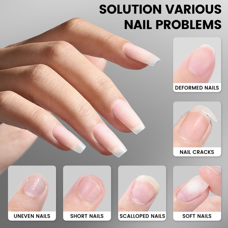 - 【Soft and Tough】YOKEFELLOW gel x nails piece is soft and good toughness, and can rebound to its original shape when folded in half, without creases and without whitening. The front edge of the nail is hard and not easy to break, so you can create your own nail art at will.