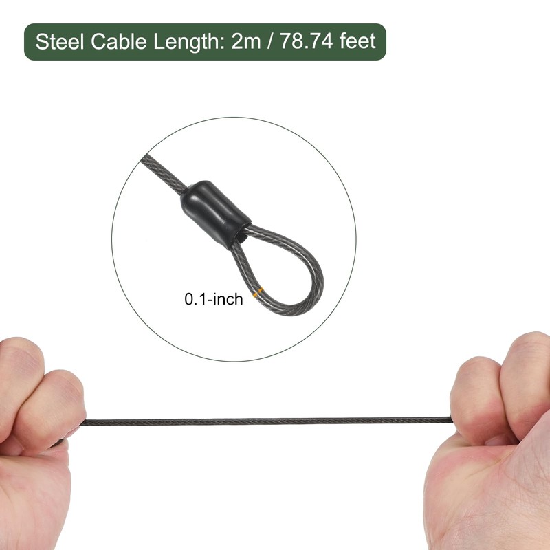 • WHAT YOU GET - The package comes with 1 set of padlocks that measure steel cable size: 2000 x 2.5mm/ 78.74 x 0.1 inch (L*Dia.); combination padlock height: 70mm/ 2.76 inch; shackle thickness: 3.8mm/ 0.15 inch.