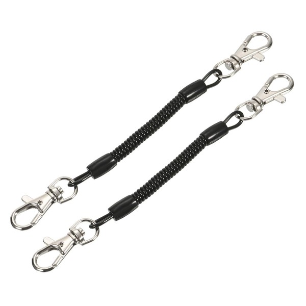 YOKIVE 2 Pcs Retractable Coil Spring Keychain with Lobster Clasps, Spiral Stretchy Cord Strap Snap Hooks | Great for Home Keys, Backpacks (Black, 8-Inch)