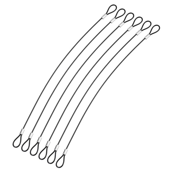 YOKIVE 6 Pcs Safety Cable Locks, Stainless Steel Security Wire Ropes with Double Loop | Great for Homes Doors Fences (Black, 12-Inch, 2mm Dia)