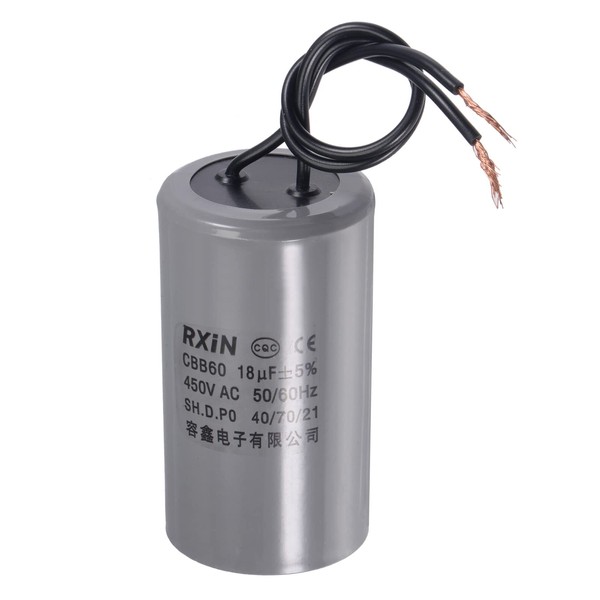 YOKIVE CBB60 Run Capacitor, 450V AC 18uF 50/60Hz with 2 Wires Lead Run Round ...