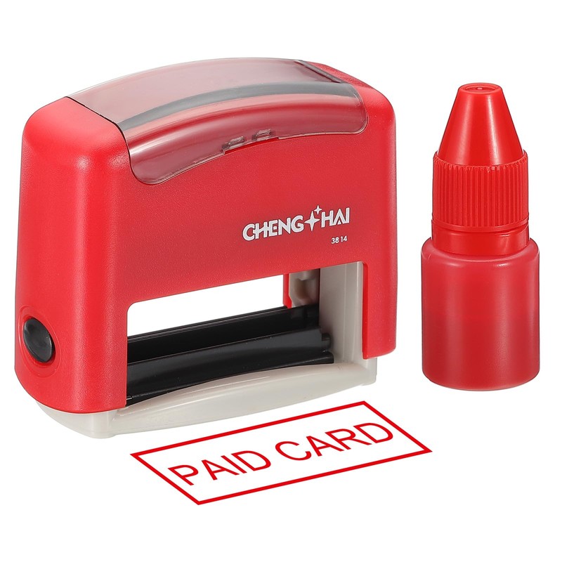 YOKIVE Paid Card Self Inking Rubber Stamp, Office Ink Business Stamp for Office Documents, Paperwork, Warehouse, Label (Red)