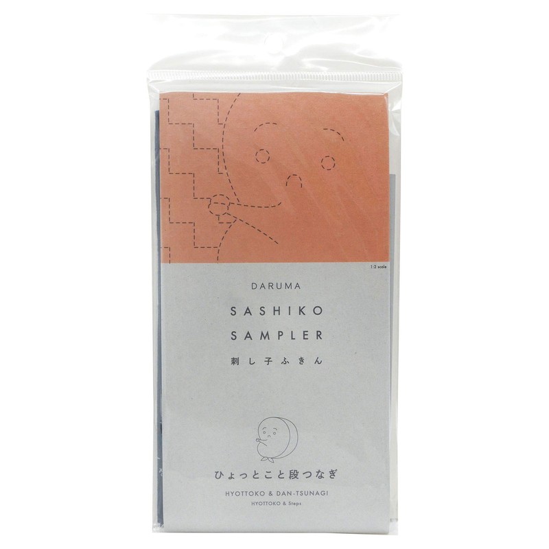 Yokota Daruma Sashiko Cloth Sashiko Fabric - Pre-Printed Sashiko Sampler - White with English Instruction Inside (Navy HYOTTOKO)