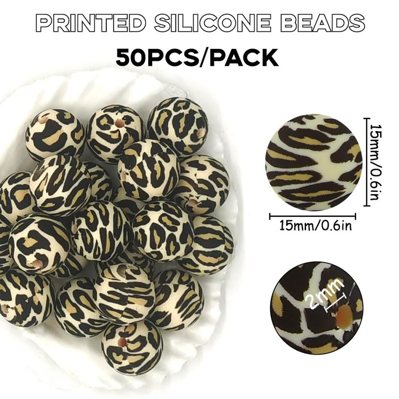- Package Contents: The set contains 50pcs 15mm leopard silicone beads bulk. They are designed with animal leopard print, beautiful and exquisite.