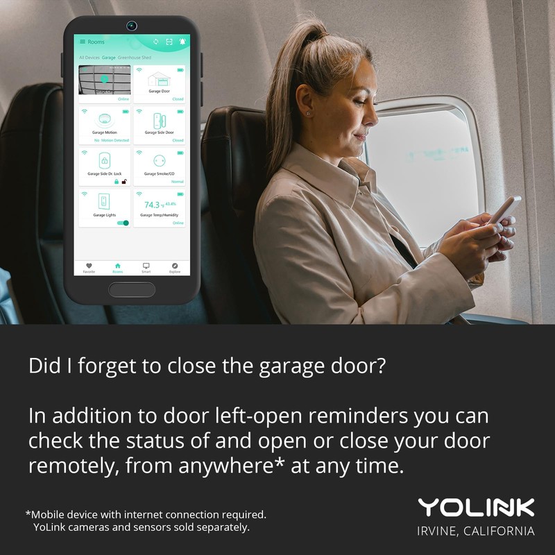 YoLink 1/4 Mile World's Longest Range Smart Wireless Garage Door Opener, App Control, Compatible with Alexa IFTTT, YoLink Hub Required
