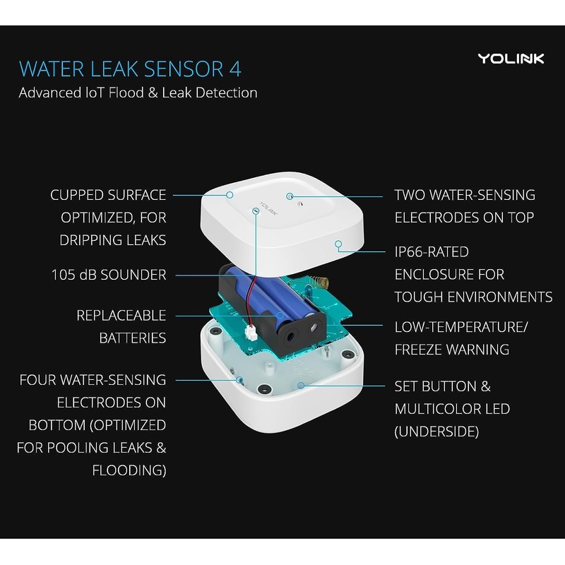 - Effortless Installation: Experience hassle-free setup with the YoLink wireless Water Sensor. Simply place it near or under the equipment you want to monitor. Ideal for toilets, water heaters, laundry machines, dishwashers, sinks, fish tanks, sump pumps, and other potential water leak areas.